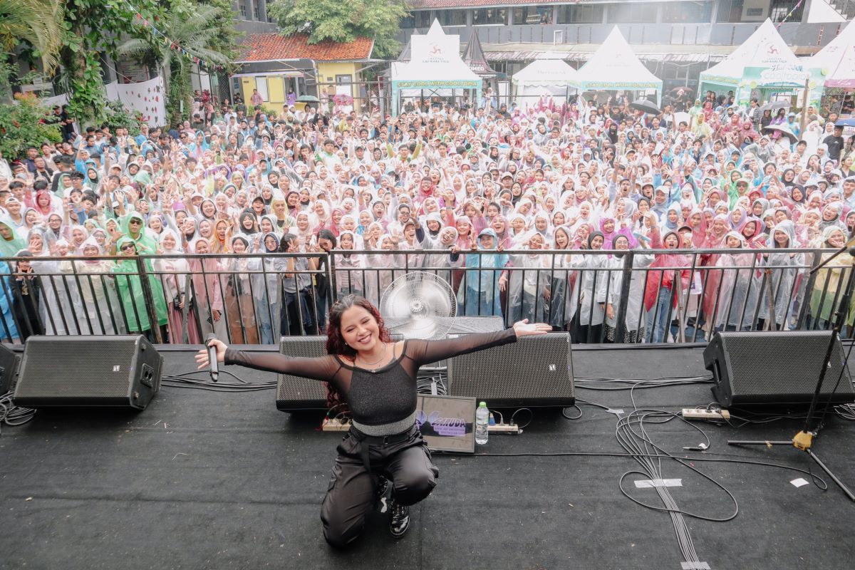 Meskipun hujan turun sepanjang acara, semangat para siswa tidak pudar. Tasha naik ke panggung dengan penuh percaya diri dan membawakan tiga lagu hits yang langsung menyulut antusiasme penonton. Tidak hanya menyanyi, ia juga mengajak siswa-siswi untuk ikut bernyanyi bersama. “Keren banget semangat kalian! Hujan tidak akan menghentikan kita untuk bersenang-senang,” seru Tasha dengan senyum hangatnya, membuat suasana semakin hidup.